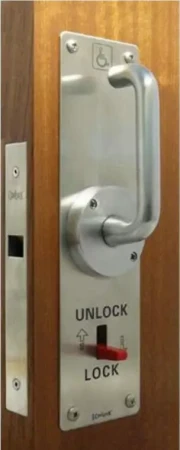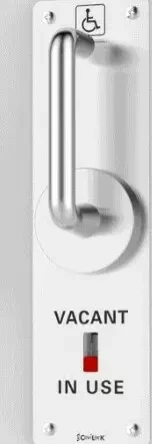 The CL100 LaviLock is the only code compliant commercial-grade disabled toilet access lock available on the New Zealand market. It has been specifically designed for sliding toilet doors and has the added benefits of "VACANT" and "IN USE" indication etched into the side plate.