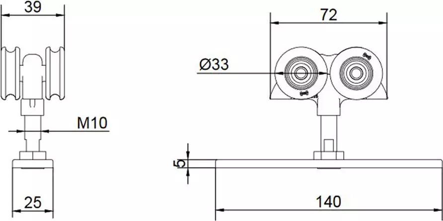 For top hung sliding doors up to 180kg