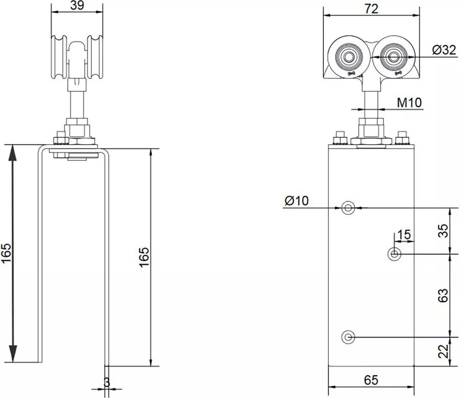 For top hung sliding doors up to 180kg