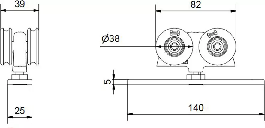 For top hung sliding doors up to 250kg