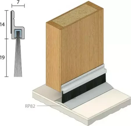 A nylon brush strip seal with an anodised aluminium carrier that mounts to the inside or outside of a door