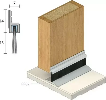 A nylon brush strip seal with an anodised aluminium carrier that mounts to the inside or outside of a door