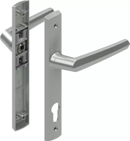 The Aria Patio Set is used with Internal half Euro cylinders (sold seperately) and can be used with the Millton, Optimum or Induro locks and others with an 85mm handle pitch. The External handle is non locking.